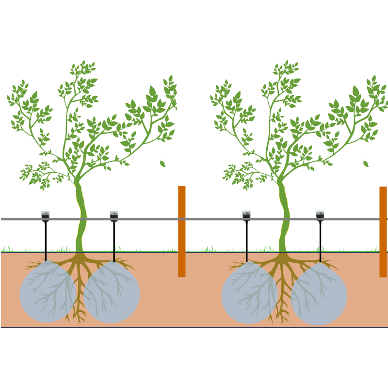 100% of the existing irrigation installation is used, you simply have to place a DRS in each integrated dripper installed. The existing pipe with integrated drippers is used, without the need to change anything.