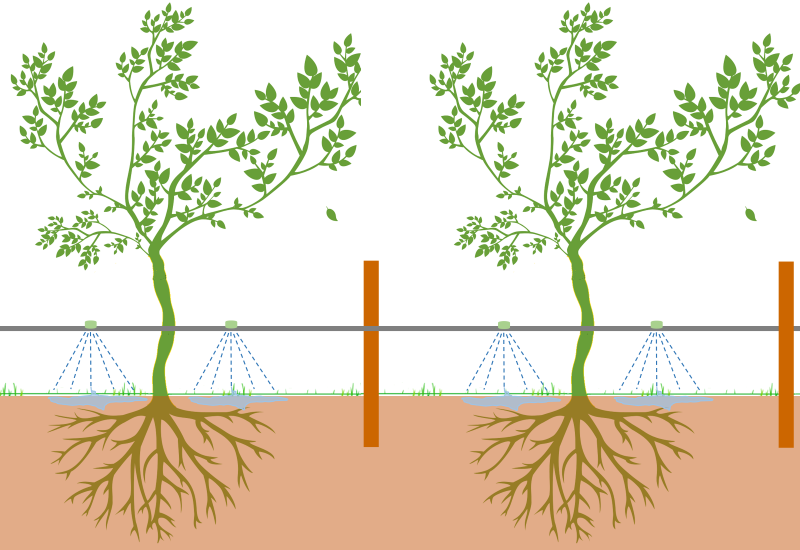 The subsoil is kept moist by feeding the roots with the necessary water and fertilizers.