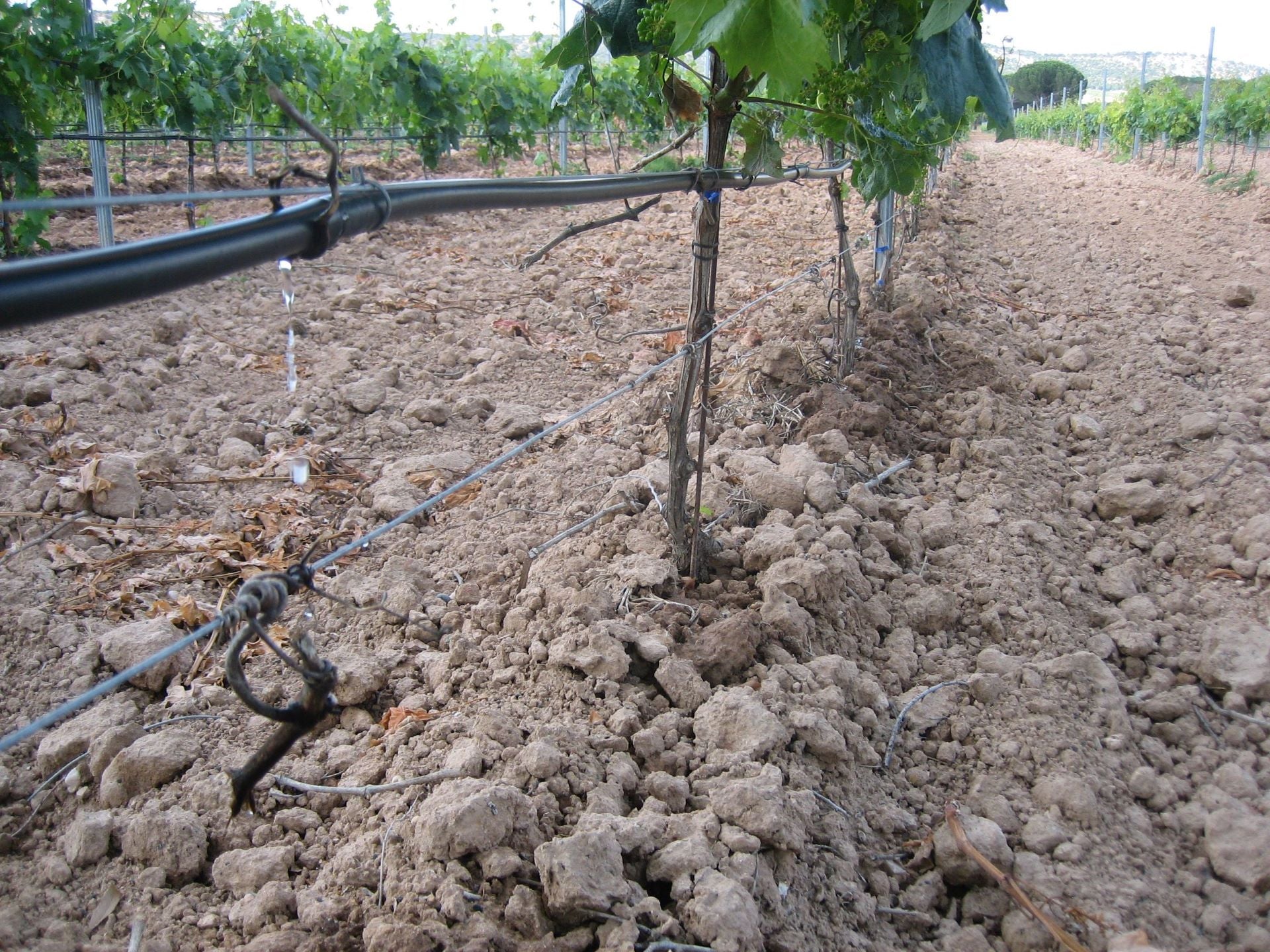 Irrigation with a surface drip system performs its main function of watering the crop.